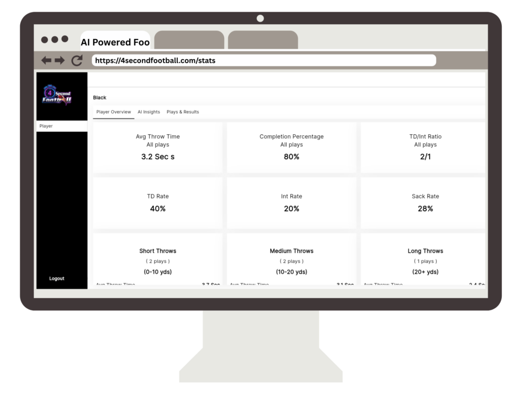 Review your performance in real time showing a QB’s accuracy and throw time for all throws and segmented throws.